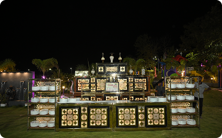 We offer multi-cuisine buffets, live counters, plated meals, and custom menus.